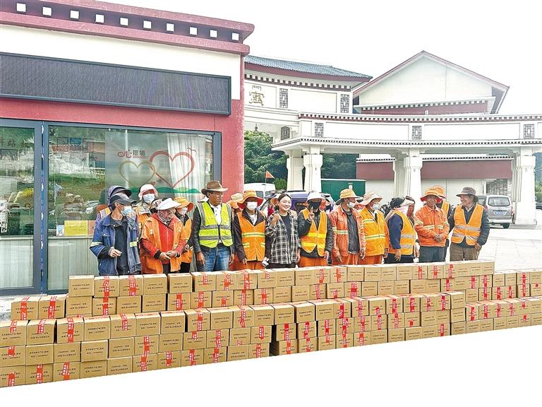 图为次仁吉看望慰问环卫工人。 图为次仁吉为林芝农产品做代言。记者 顿珠扎西 摄