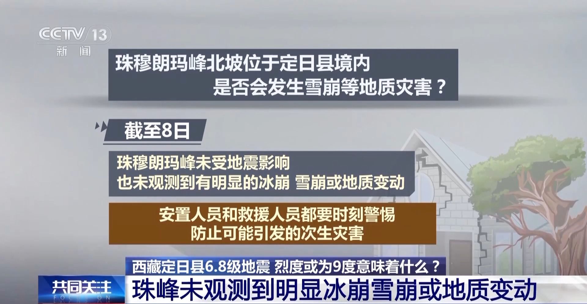 此外,还有人关心,珠穆朗玛峰北坡位于定日县境内,是否会发生雪崩等地质灾害?对此,中国科学院珠穆朗玛峰大气与环境综合观测研究站站长马伟强表示,截至8日,珠穆朗玛峰未受地震影响,也未观测到有明显的冰崩、雪崩或地质变动。但是专家提醒,安置人员和救援人员都要时刻警惕,防止可能引发的次生灾害。