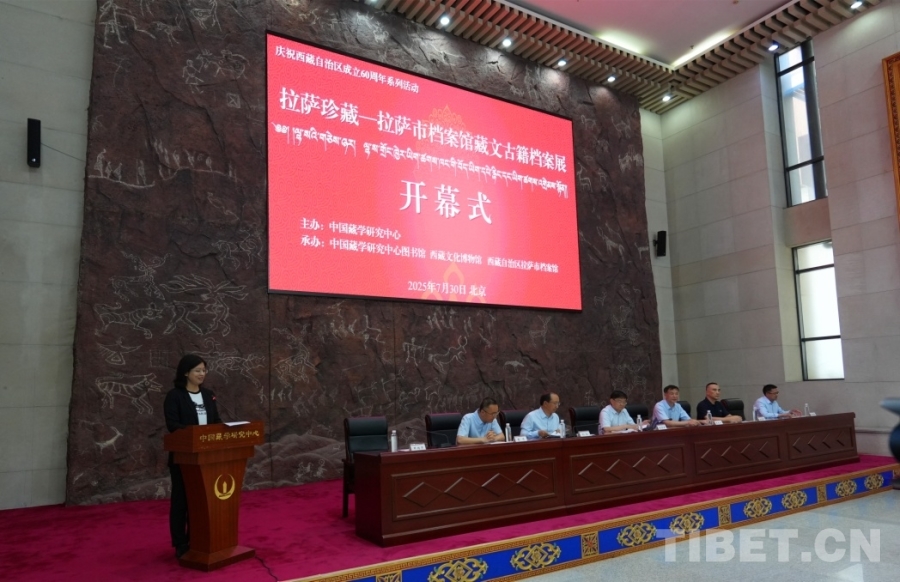 7月30日,“拉萨珍藏——拉萨市档案馆藏文古籍档案展”在西藏文化博物馆开幕。中国藏学研究中心党组书记陈宗荣出席并宣布展览开幕,中国藏学研究中心副总干事扎洛、拉萨市档案馆馆长桑荣瑞分别致辞。国家民委、中国社会科学院、国家档案局、中国第一历史档案馆、中国国家版本馆、西藏自治区档案局、拉萨市档案馆等单位有关代表,中国藏学研究中心各部门负责同志,受邀观众、志愿者参加开幕式。中国藏学研究中心图书馆负责同志主持开幕式。