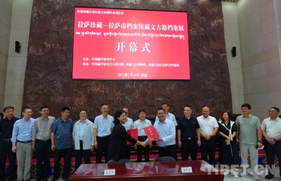 本次展览由中国藏学研究中心主办,中国藏学研究中心图书馆、西藏文化博物馆和西藏自治区拉萨市档案馆共同承办。开幕式上,中国藏学研究中心图书馆与拉萨市档案馆签署《藏文古籍档案文献数据共享与开发利用合作协议》。