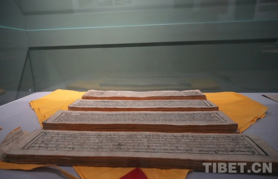 图为展出的藏文古籍 摄影:周晶