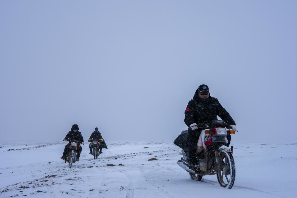 巡山队员在可可西里卓乃湖附近巡护。新华社记者 杜笑微 摄