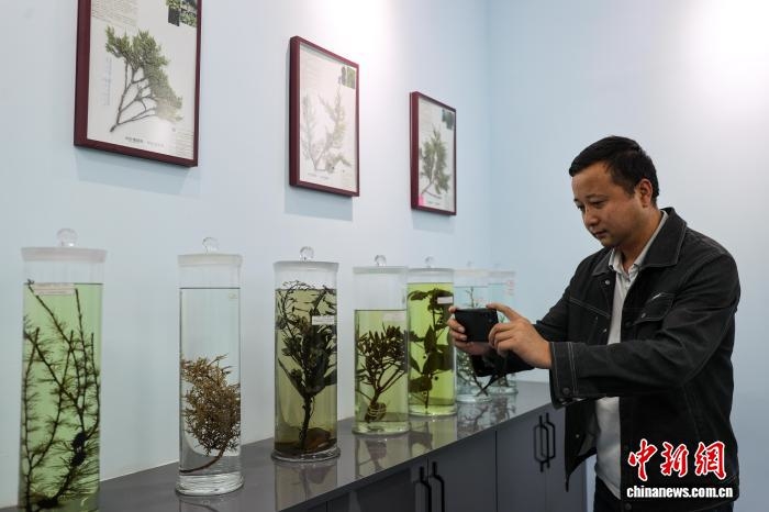 8月7日,青海省玛可河林业局自然科普馆工作人员介绍植物标本。该科普馆位于青海省果洛藏族自治州班玛县。馆内陈列雪豹、棕熊等珍稀高原物种标本,以及玛可河林区内数百种植物标本,系统展示高原生物多样性图谱,解锁三江源生态“密码”。中新社记者 薛蒂 摄