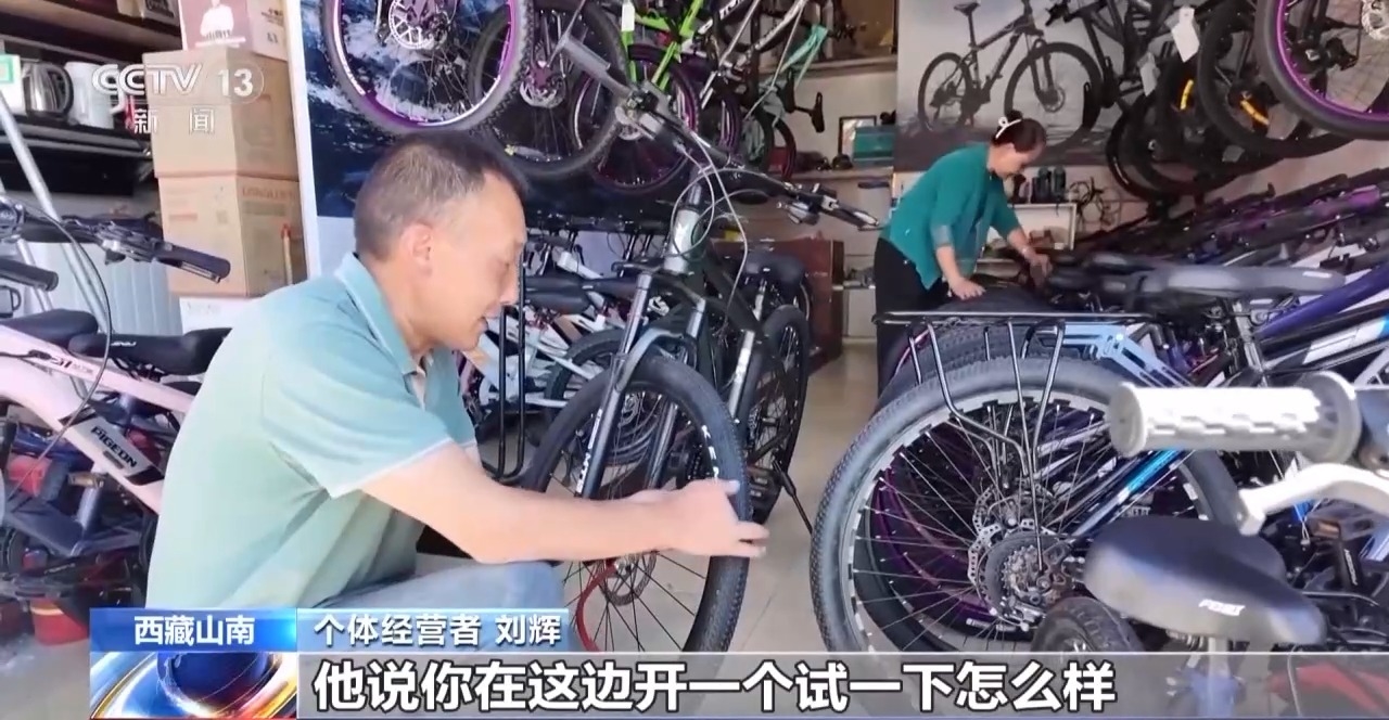 个体经营者 刘辉:我老大哥说,健身这个趋势比较好,格桑路这条街没有卖自行车的,他说你在这边开一个试一下怎么样。那个时候有顾虑、害怕,就尝试陆陆续续卖自行车。