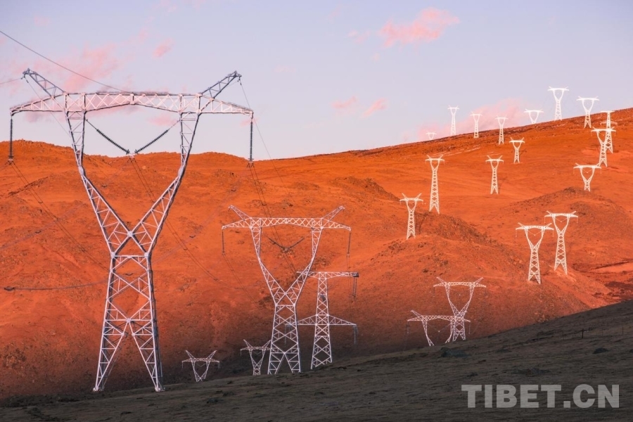 资料图:西藏自治区境内的电网输电线路 国网西藏电力供图