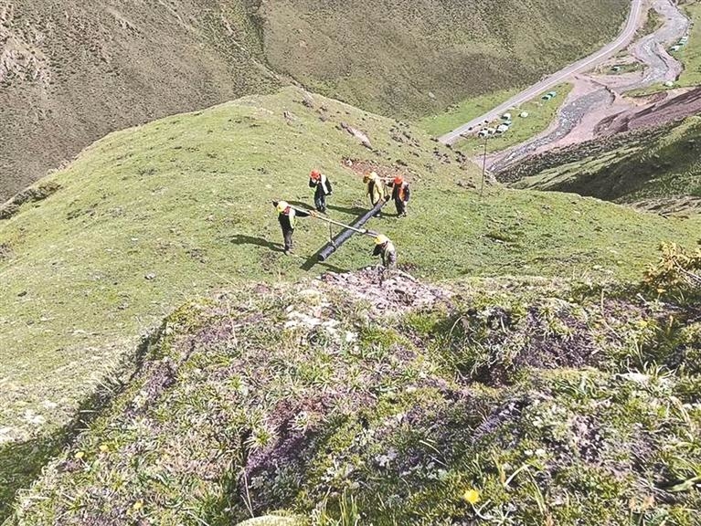 图为西藏电信公司施工人员开展通信基础设施建设,材料搬运现场。本报记者 董国峰 彭琦 摄