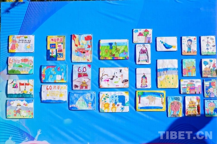 艺术作品展区集中展出以“西藏自治区成立60周年”为主题的绘画、书法作品。孩子们用画笔描绘西藏壮美的自然风光、独特的民俗文化与发展成就;书写庆祝诗词、名言警句,展现传统艺术与民族文化的深度融合。