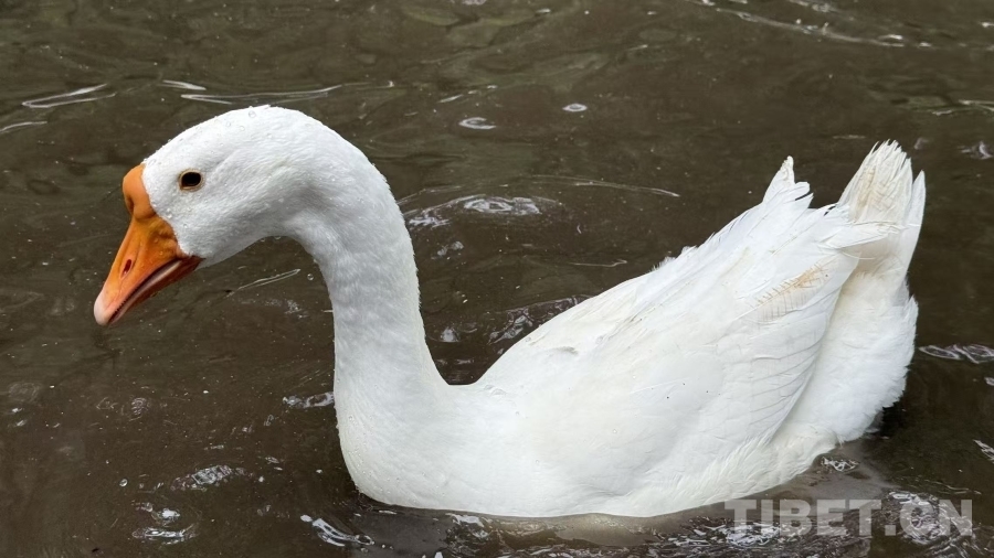 图为在水中游弋的大白鹅 仁青旺姆供图