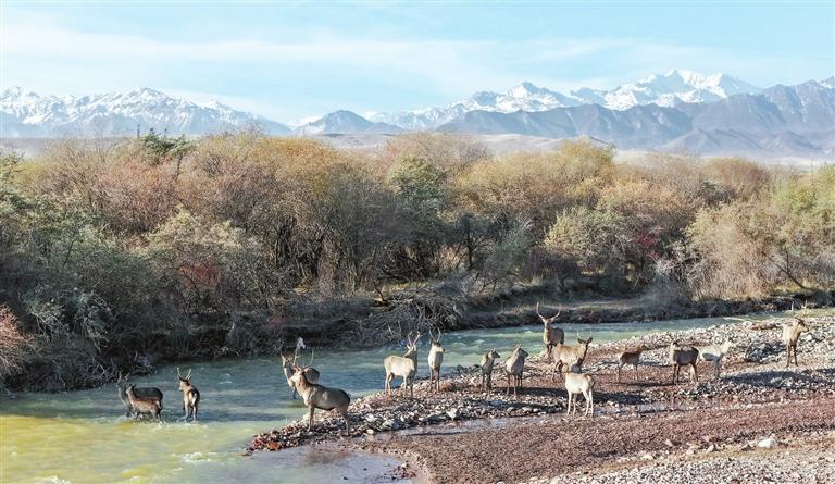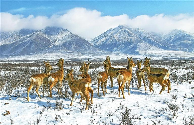 在天祝县抓喜秀龙草原上,成群的狍鹿悠然觅食;高台县祁连山北麓出现了鹅喉羚的矫健身姿;肃南县夏日塔拉草原上,野生马鹿悠然踱步,秃鹫蓝天盘旋;阿克塞县哈尔腾草原上,藏野驴、藏原羚奔驰在高山雪线之下……
