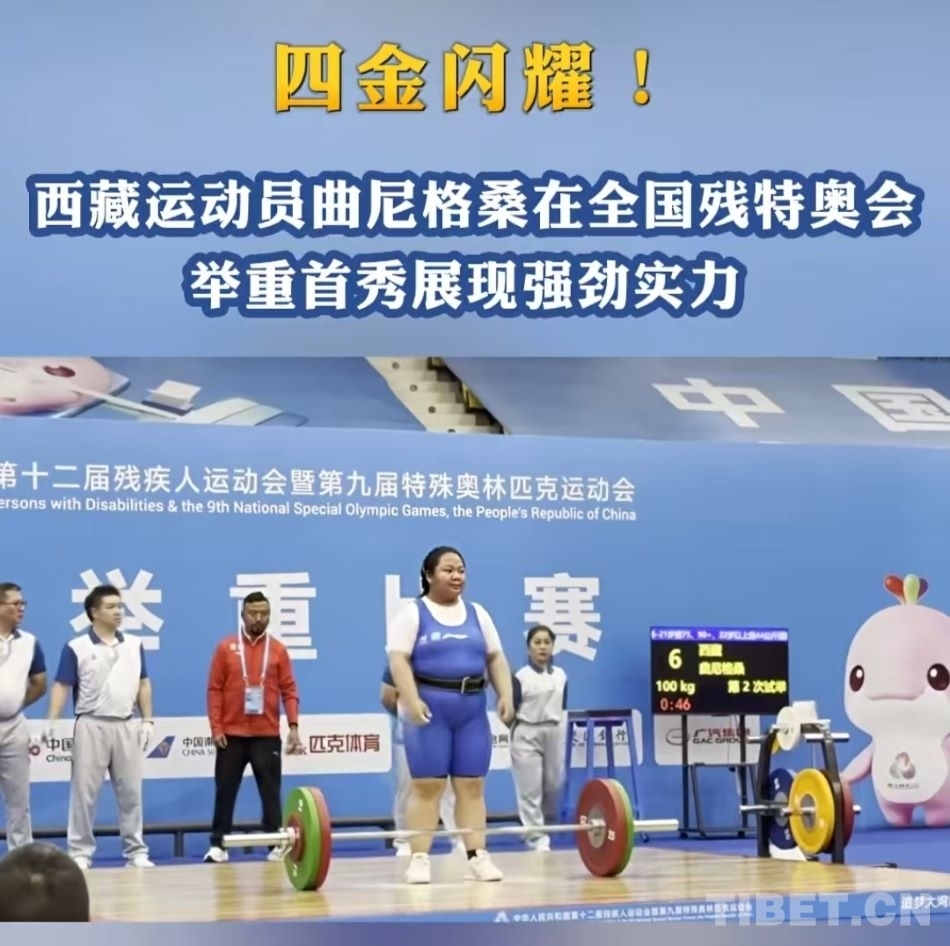 12月13日,全国残特奥会举重比赛决赛在广东省中山市举行,西藏自治区18岁残疾人运动员曲尼格桑表现亮眼,在90公斤级以上(含深蹲、卧推等)四项决赛中一路领先,斩获四枚金牌,站上领奖台时激动落泪。值得一提的是,这是西藏自治区今年首次组队参加特奥举重比赛。