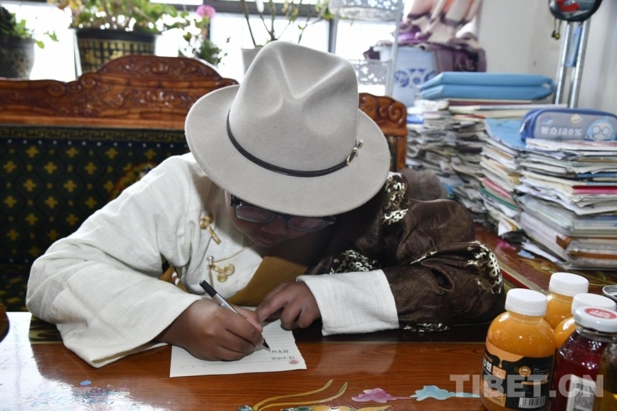 图为噶吗多吉为王成诚同学写信 摄影:赵振宇