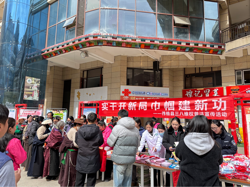在县城康巴文化广场,藏汉双语宣传标语醒目高悬,普法咨询台前群众络绎不绝、气氛热烈。妇联工作人员与巾帼志愿者面对面发放维权宣传手册与政策解读资料,心贴心讲解与妇女群众生产生活息息相关的法律要点。活动聚焦群众急难愁盼,通过现场答疑、以案释法、案例剖析等群众喜闻乐见的形式,深入解读《民法典》《妇女权益保障法》《反家庭暴力法》等核心法律法规,并手把手指导群众熟练运用12338妇女维权热线,真正让法治精神走进千家万户。